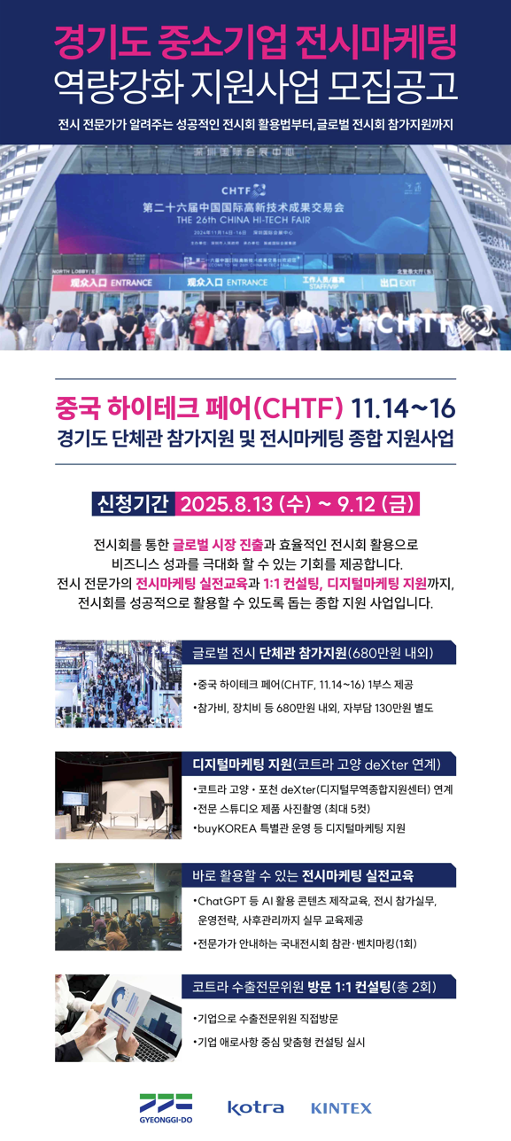 경기도 중소기업 전시마케팅 역량강화(중국하이테크페어CHTF 경기도단체관) 3차 모집공고