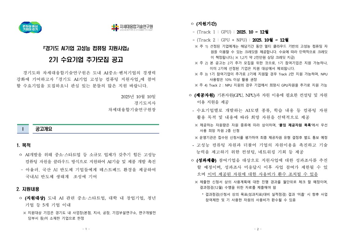 붙임 1. 『경기도 AI기업 고성능 컴퓨팅 지원사업』 수요기업 모집 공고문_2기 추가모집..pdf
