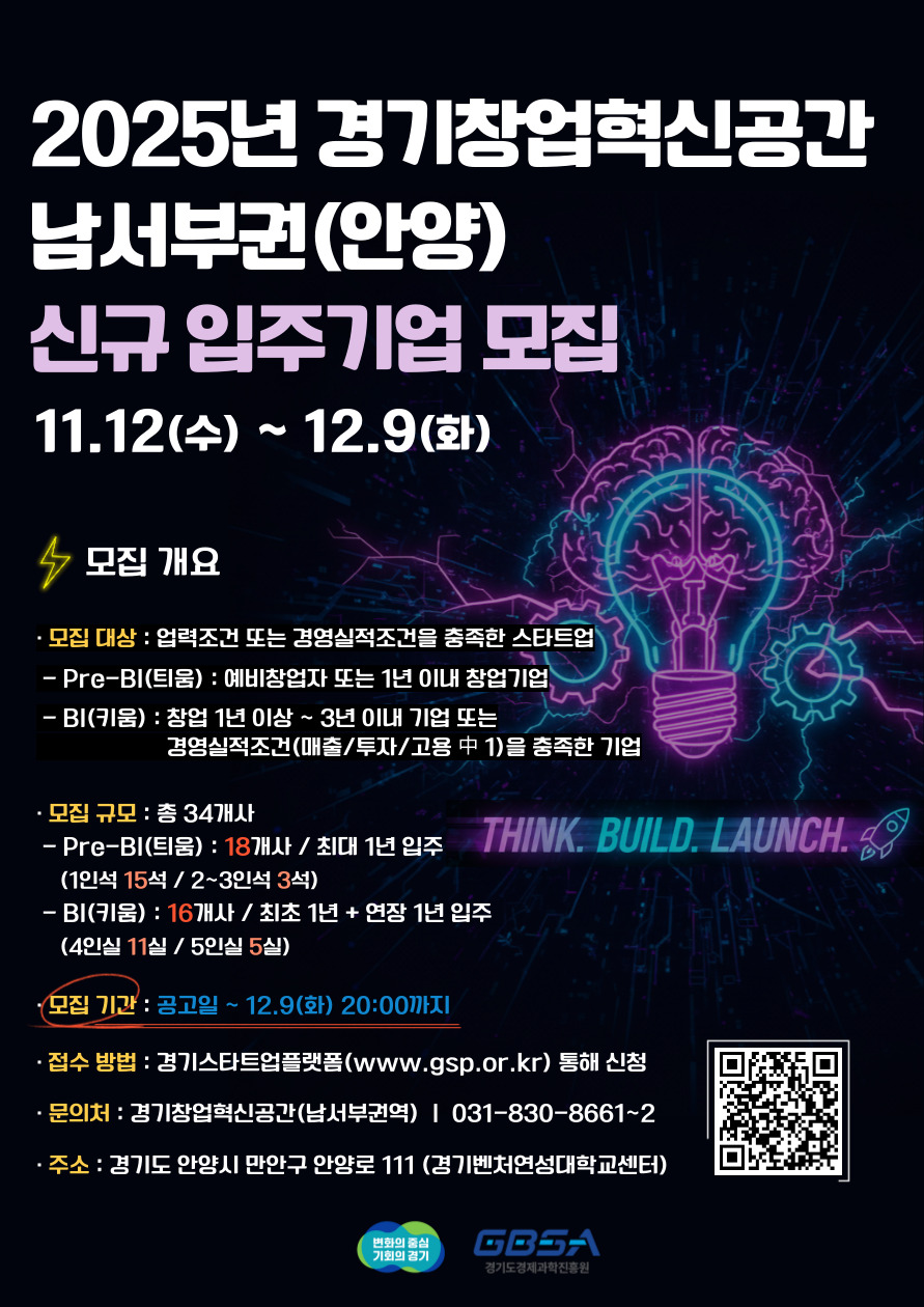 2025년 경기창업혁신공간 남서부권(안양) 신규 입주기업 모집