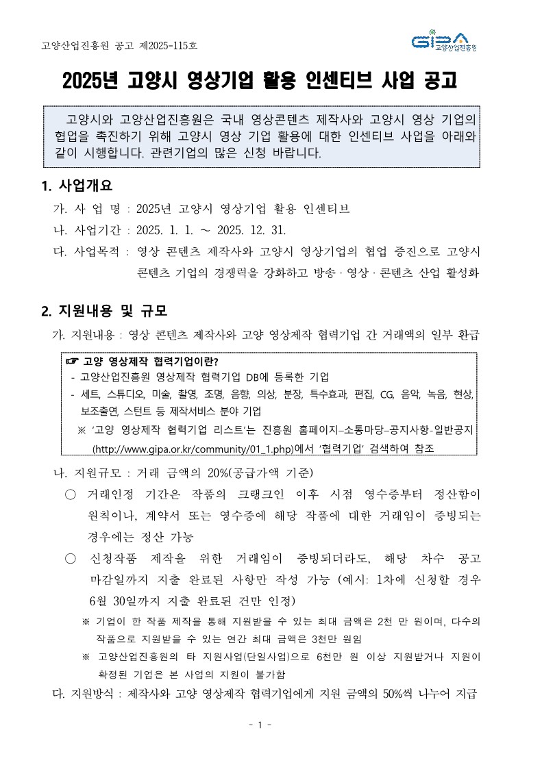 2025년 고양시 영상기업 활용 인센티브 사업 공고문 (3).hwp